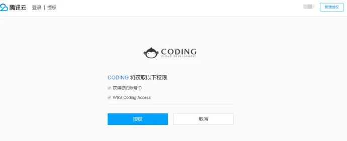 3)如果你的Coding账号没有授权腾讯云账号,那么需要授权一下!