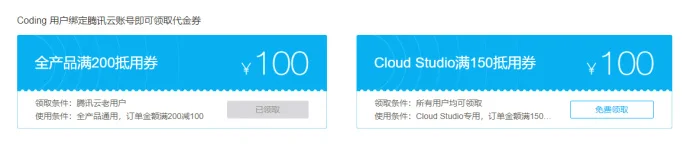 1. 活动仅限已绑定腾讯云账号的Coding用户领取。(注:不包含协作者等)